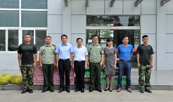 為進(jìn)一步增進(jìn)軍民關(guān)系,在“八一”建軍91周年之際,8月1日上午,鹽房定遠項目徽鹽安徽飯店領(lǐng)導班子一行來(lái)到定遠縣消防大隊走訪(fǎng)慰問(wèn)官兵,在為他們送上西瓜、飲料、礦泉水等慰問(wèn)品的同時(shí),也轉達了中共徽鹽地產(chǎn)定遠項目黨支部對他們節日的問(wèn)候與祝福。