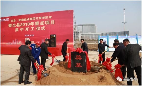 3月23日上午,泗縣縣委縣政府在徽鹽·虹都府項目紅星美凱龍地塊隆重舉行泗縣·安徽鹽業(yè)集團紅星美凱龍暨全縣2018年重點(diǎn)項目集中儀式??h領(lǐng)導張志強、王法立、趙朝法、龐壯、趙明等四大班子成員、安徽鹽業(yè)集團徽鹽地產(chǎn)領(lǐng)導程群、泗縣項目全體人員及縣直有關(guān)單位、40個(gè)集中開(kāi)工項目負責人等出席了奠基儀式。