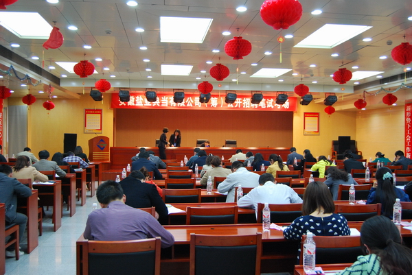 4月26日下午,安徽鹽業(yè)典當有限公司(籌)經(jīng)營(yíng)管理人員公開(kāi)招聘筆試在鹽業(yè)大廈23樓會(huì )議室舉行。本次招聘職位為公司總經(jīng)理1名、財務(wù)部經(jīng)理1名、客戶(hù)經(jīng)理3名。招聘公告通過(guò)《安徽日報》、《新安晚報》、《合肥晚報》、新安人才網(wǎng)等媒體發(fā)布后,社會(huì )反響較為強烈,參與人數眾多。經(jīng)資格審查后,來(lái)自省內的59名中青年人才參加了考試,考聘比例為11.2:1,個(gè)別職位考聘比例達到21:1。